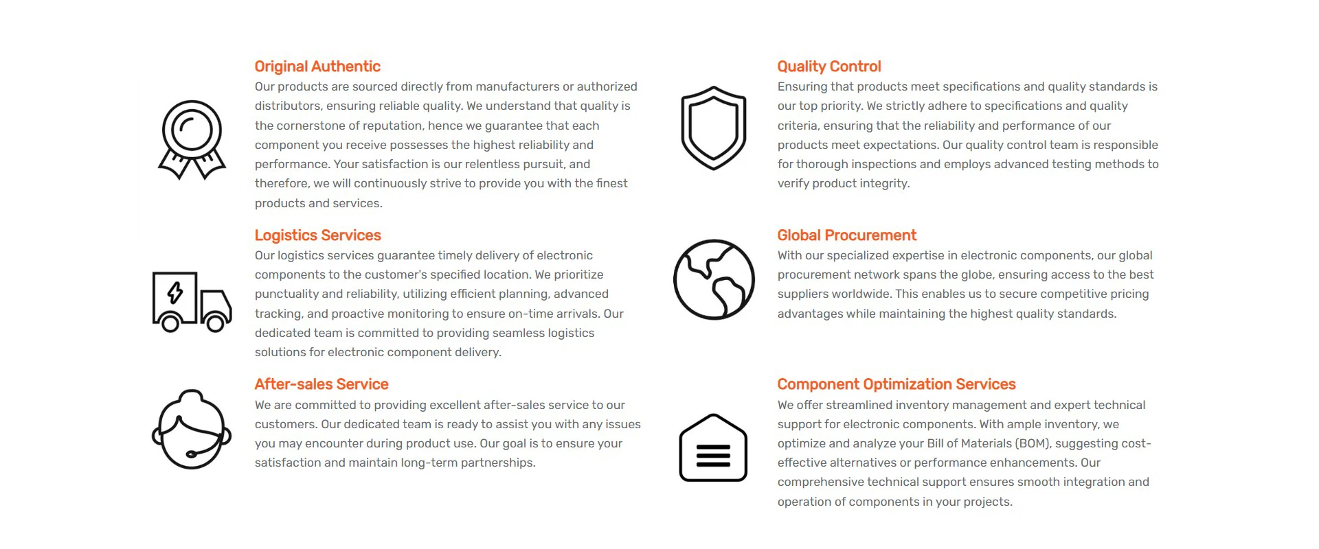 Shenzhen Jiachuang Weiye Technology Co., Ltd. is a professional electronic components distributor and channel sales company. We provide one-stop BOM procurement, distribution, and quality services, aiming to offer efficient and high-quality solutions to our customers. With a professional team including business, design, research and development, procurement, and QC teams, along with comprehensive after-sales service, we ensure timely satisfaction of customer needs and provide satisfactory support. Since our establishment, we have always adhered to the business philosophy of 'original genuine products, reputation first, highest efficiency, best service, and reasonable prices', winning the trust and support of suppliers and customers with professional quality and dedication.